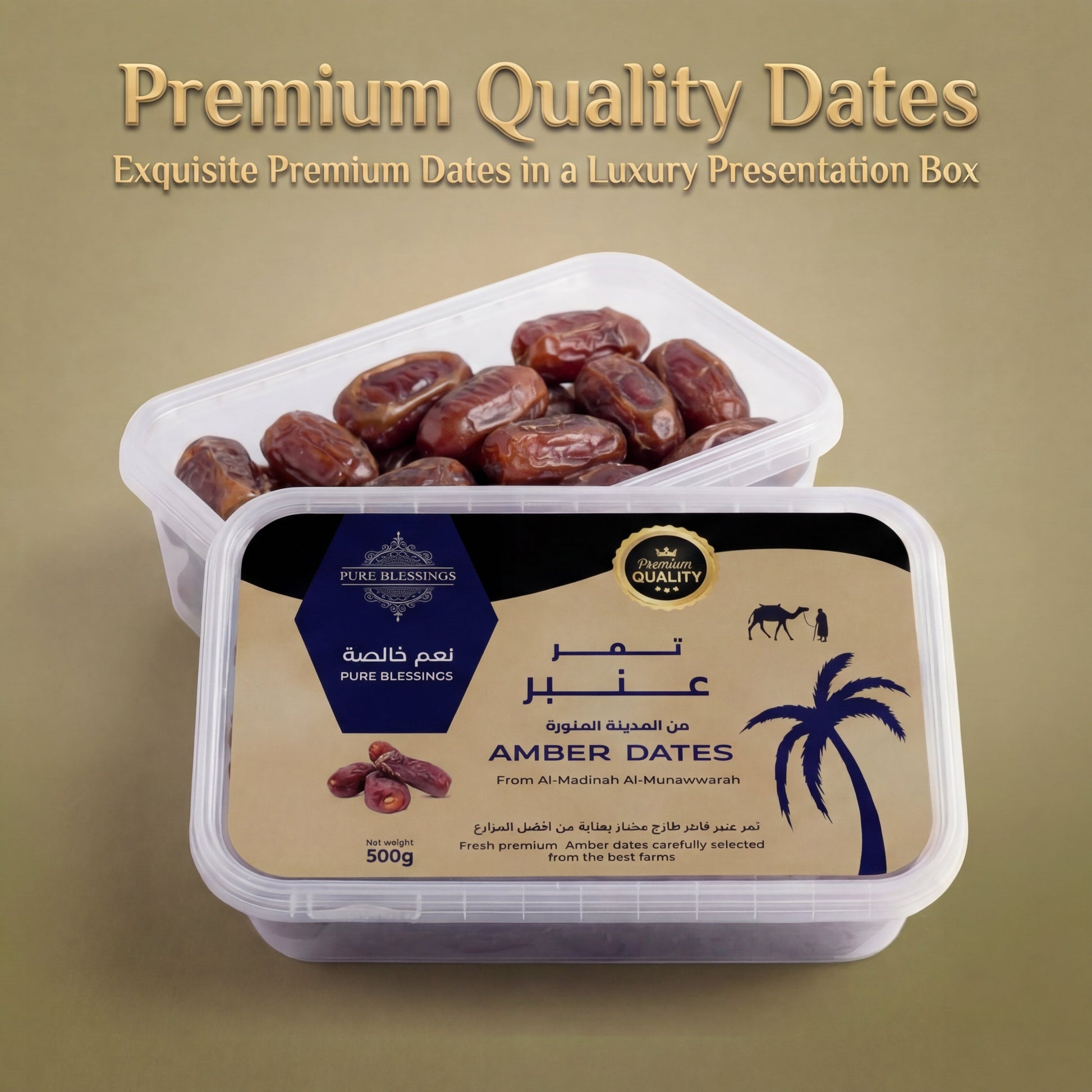 Pure Blessings laaya hai Premium Amber Khajoor, jo apni firm texture, rich flavor aur long-lasting freshness ki wajah se Saudi Arabia mein khas pehchaan rakhti hai. Ye khajoor un logon ke liye behtareen hai jo kam mithaas ke sath strong natural taste pasand karte hain.